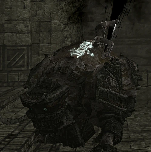 Its second usage is in the battle against the 10th colossus, when it is stunned after hitting the wall. It will switch back to A Messenger From Behind when the boss manages to dislodge itself and escape.