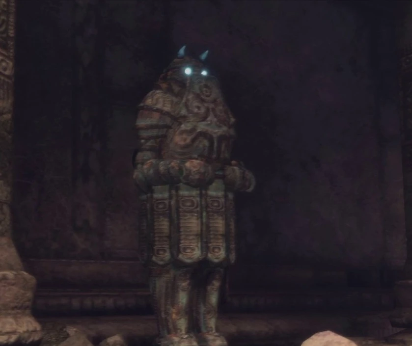 - The Armored Soldiers also appear to resemble golems of Hebrew legend. This would not be the first time a Team Ico game has been inspired by Hebrew legend, notable times including Dormin being spelled "Nimrod" backwards, the Shrine of Worship representing the Tower of Babel, and the concept of the colossi being animated earth and stone also being similar to the concept of a golem.