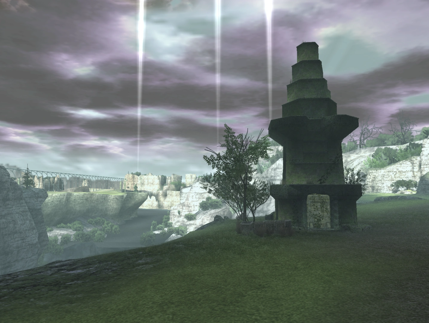 - The quadrant G4 used to feature another save shrine next to the entrance to the 4th colossus' arena. Evidence of its existence are in the E3 Demo's sheets showing its coordinates on the region, and it also appears in early slow models of the area, as seen first in the OPM Demo.