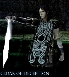 | “ | That is the 'Cloak of Deception'... By using it, thou shalt become invisible to the colossus... |