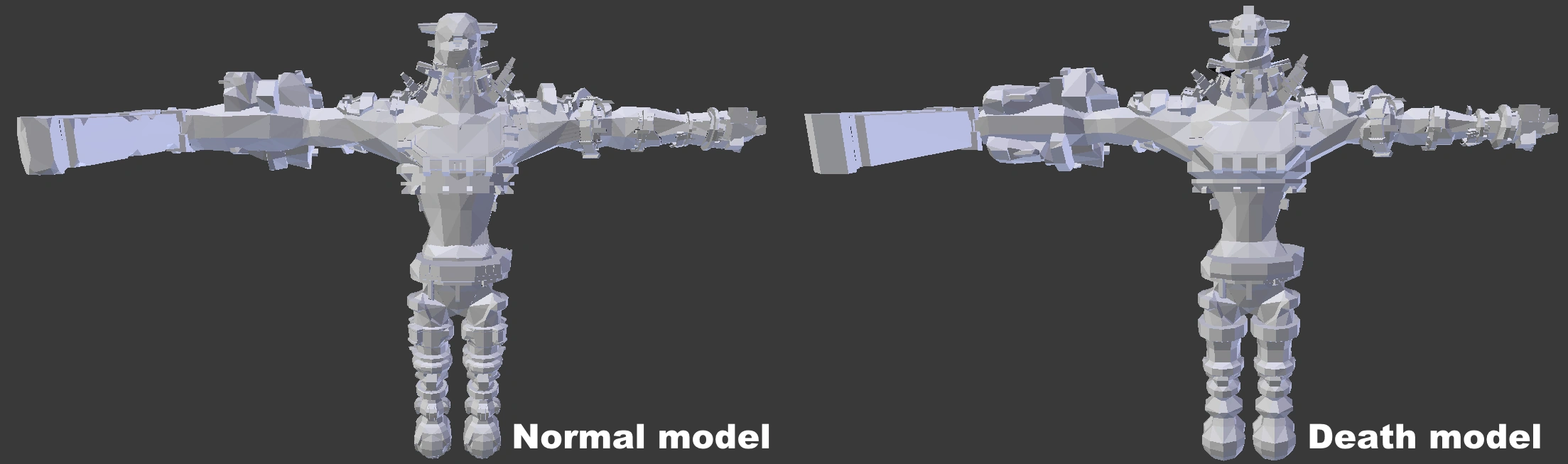 Death model of Knight from the E3 Demo compared to its actual model. It shows its earlier incarnation.