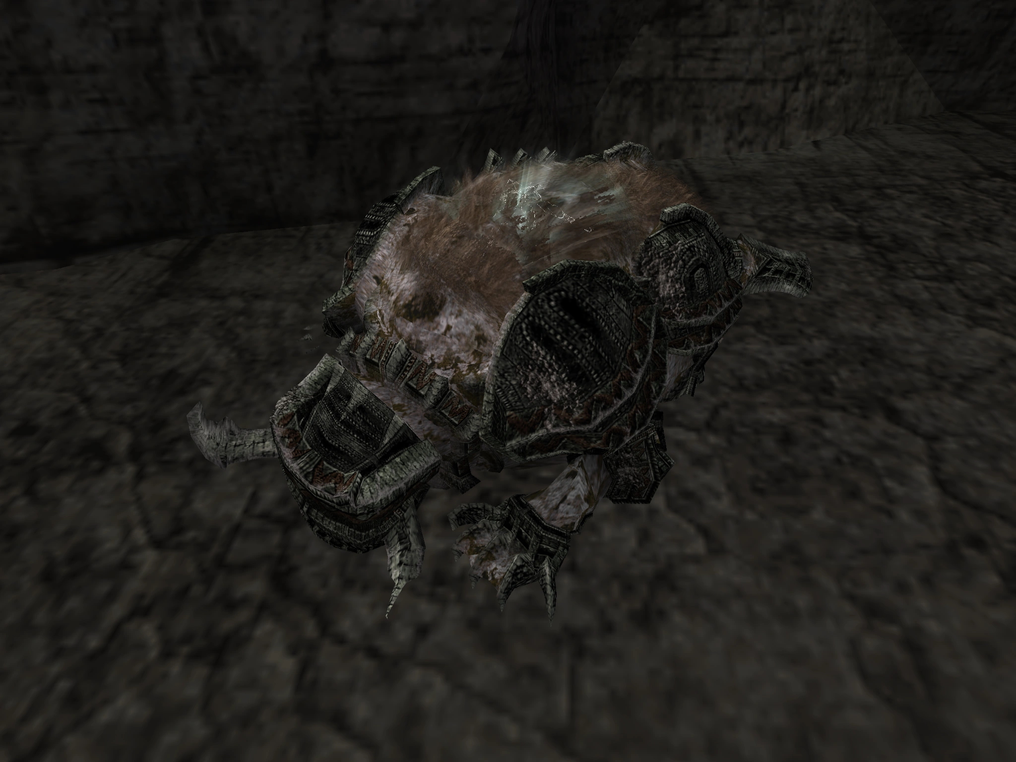 Also in this version, Leo's death model, which is the dark shadow that covers a colossus' corpse after the battle is over, was based on an earlier design of the boss, as it used to have larger horns.