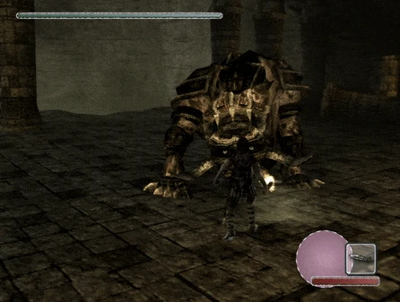 Its major sigil had a visual lightning effect on it, similar to the ones seen in early footage and screenshots from 2004, and the boss shook the camera slightly while running, an element that was carried over from Griffin, as this version uses the entries 'SCRGriffinRush' and 'SCRGriffinRumble' from the ScriptCtrlDefDEFAULT data sheet.
