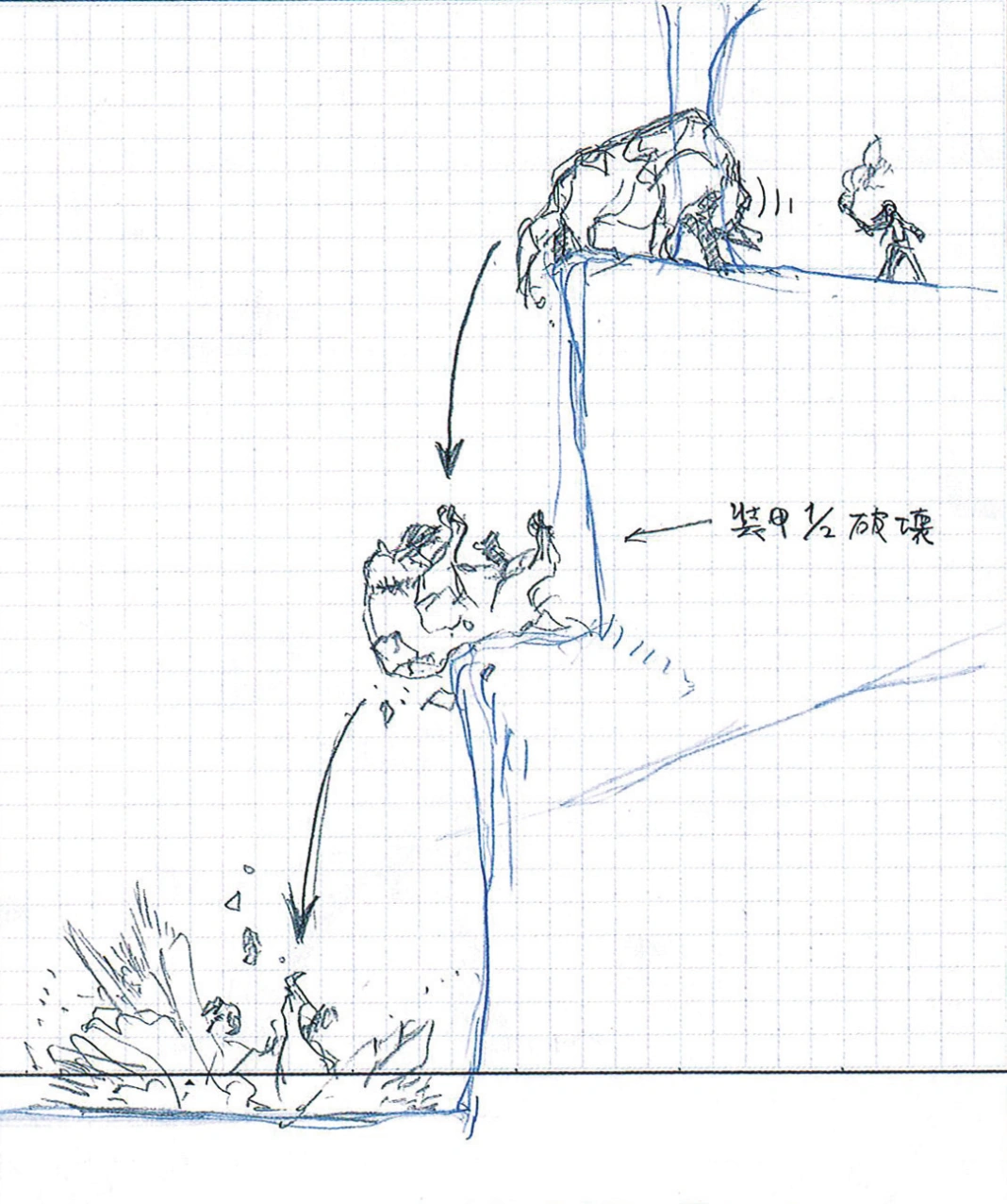 Development sketch of Leo falling into the lake. Year of creation: 2003~2004.