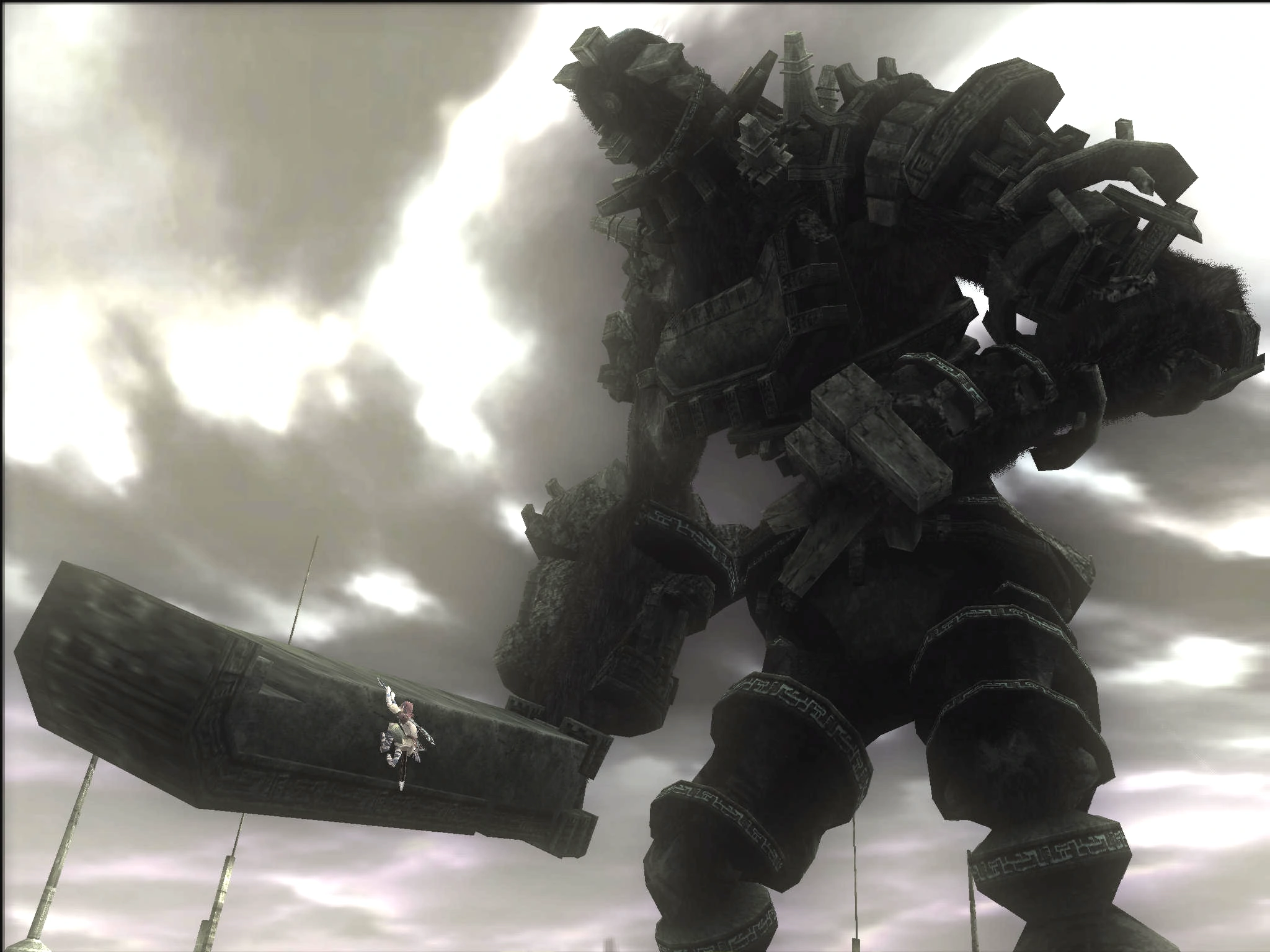 Note the block atop the colossus' head.