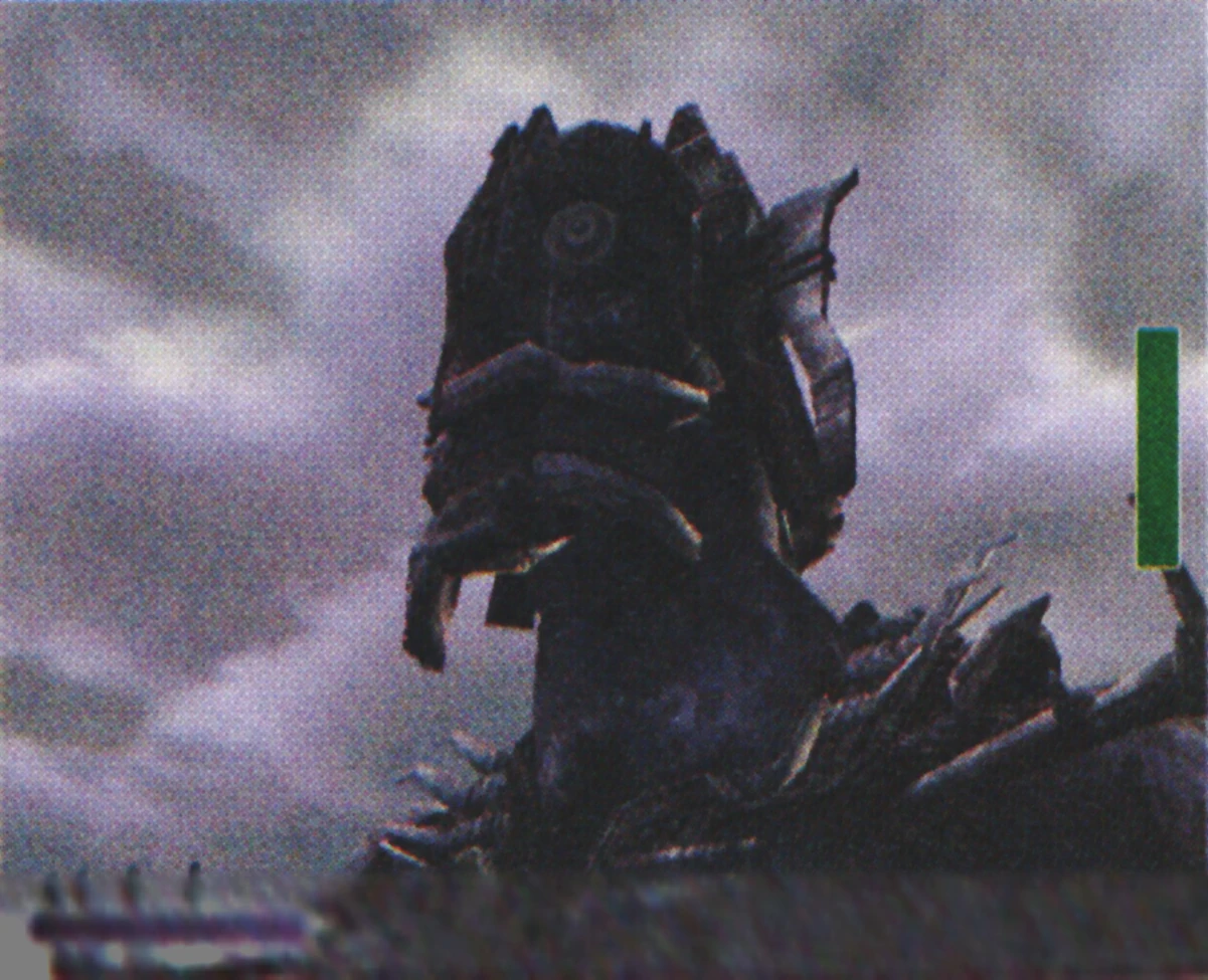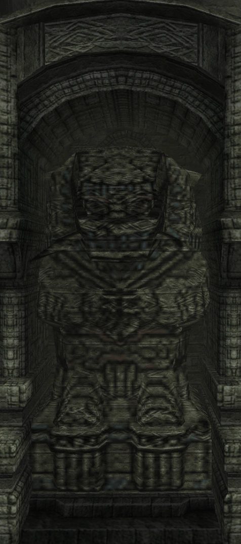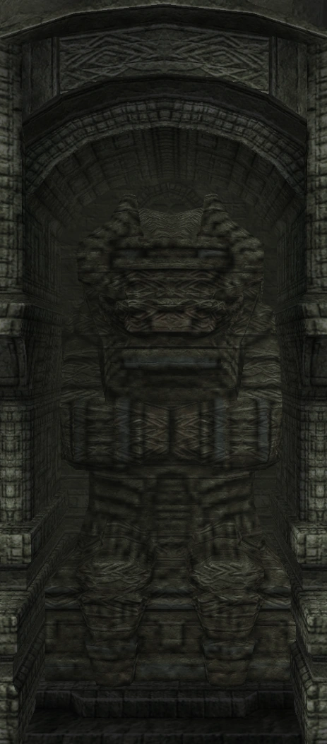 Idol statue of the fifteenth colossus. Its design heavily resembles the first colossus, with the exception of the head, which seems to resemble more one of the concept arts for Devil. Whether that's a coincidence or not is unknown.
