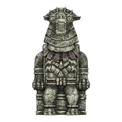 Idol statue of the thirteenth colossus. Its design doesn't look too different from its colossus counterpart, as its head hardly ever changed at all. One of its wings can be seen in its idol texture, but not in the model itself.