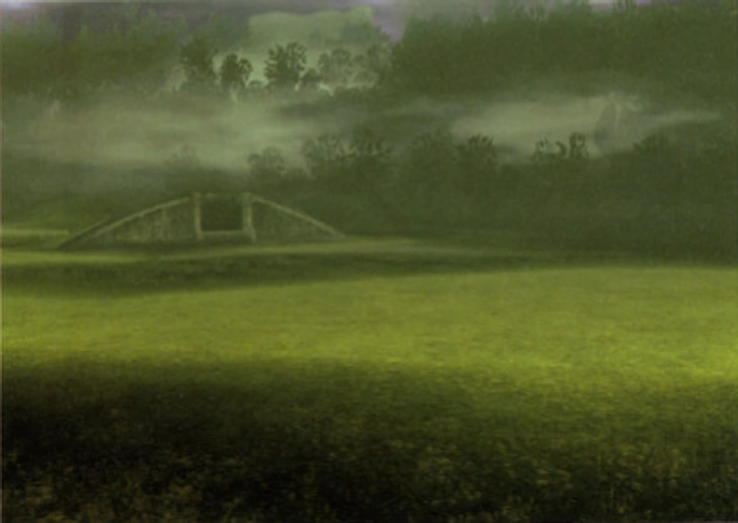 A green land surrounded by cliffs. The arena has four hill-like graves, with stairs that lead to the basement. The basement is connected by a narrow passageway, and you can move to any of the stairs. At the back of the arena there is a platform in which the colossus sits on when first finding it.