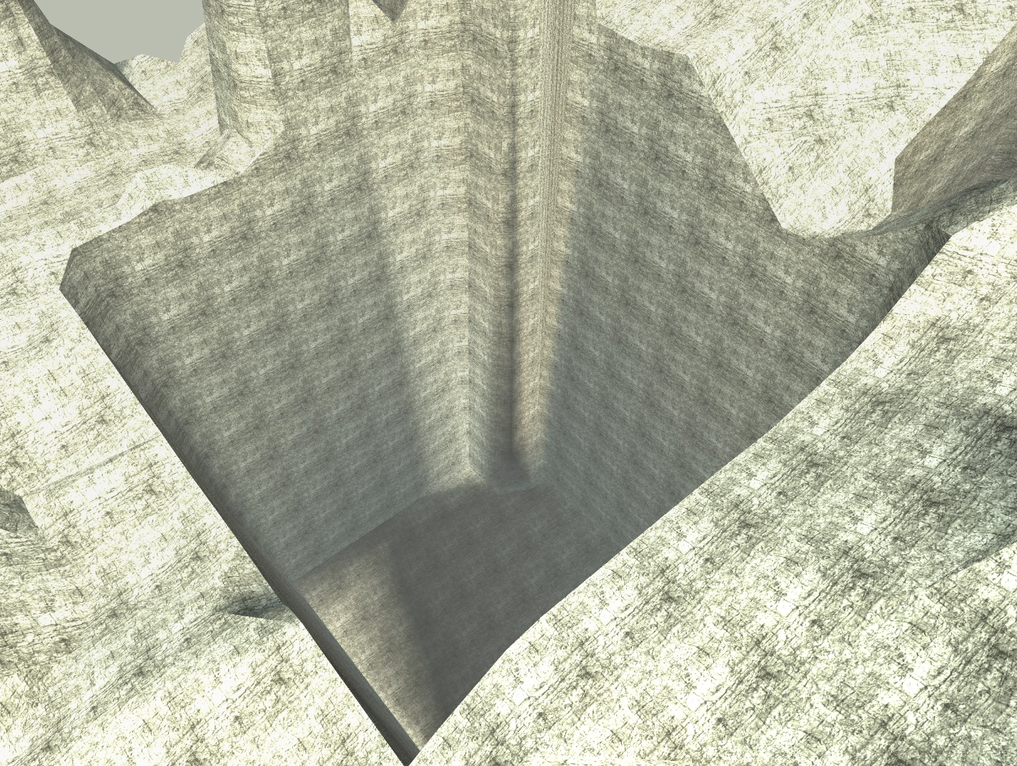 By looking at the model of I1 present in the game's world, it can be noted that it is neatly divided in a square pattern, which indicates that it was likely automatically generated from a height map, with almost nothing being changed manually.