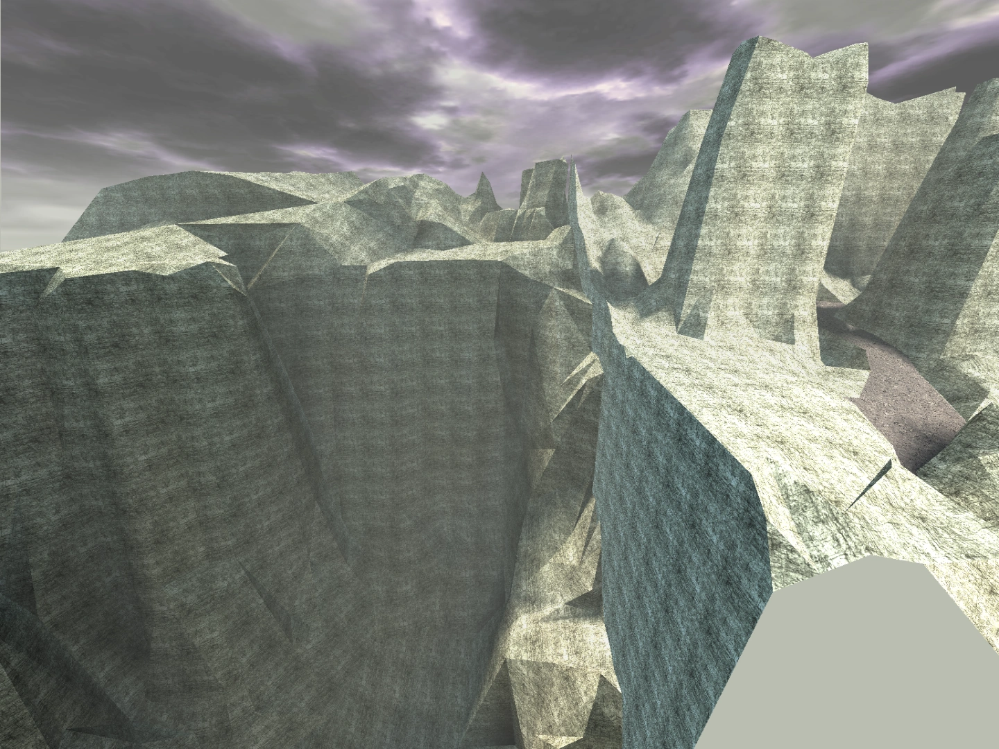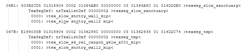 Slow models are super low (slow) resolution models created for being seen from a distance, while the high resolution models are unloaded. The texture segment of the first slow model related to Sanctuary is >texseg_slow_sanctuary<, listing two unused textures named 'slow_snctry_wall_mip', and 'slow_snctry_wall2_mip'. The second texture segment related to it is >texseg_tmp<, being some kind of test. It references the 'slow_snctry_wall2_mip' from the previous texseg, as well as the 'slow_sk_rwl_canyon_yelw_a001_mip' - a slow version of the textures used on I2's mountains, and quadrants that used to exist around it.[1] There is also a completely unused texture called 'slow_snctry_mip' that is not listed as belonging to any model.