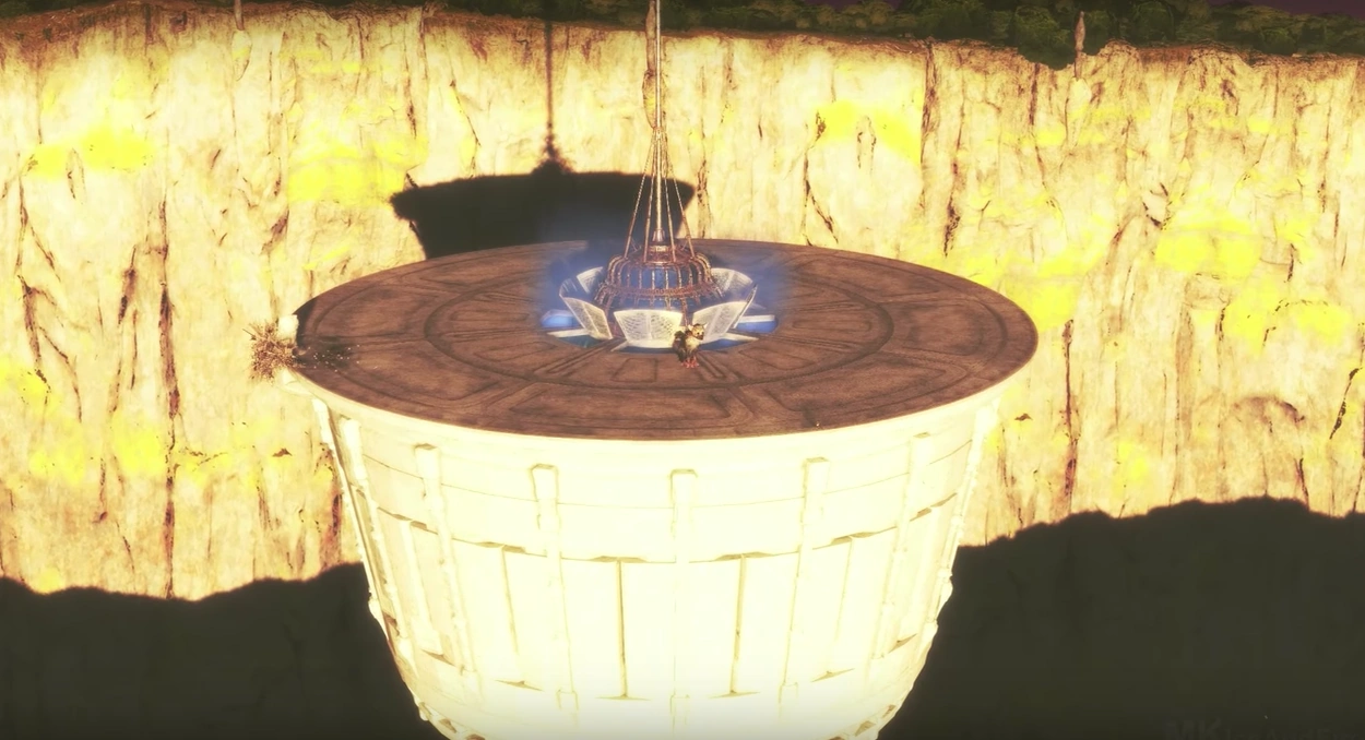The Sentinel Tower is a huge tower that stands out from all the other buildings in the Nest. While other towers are crumbling, overgrown, and made of darker stone, the Sentinel Tower is strong, white, and rises above all else. It is the only building tall enough where, on the roof, one can see over the Nest's impassable natural walls. The Sentinel Tower appears seamless and smooth, lacking the defined lines of brick and hewn blocks that define the look of every other structure nearby. Its overall shape is reminiscent of a King chess piece.