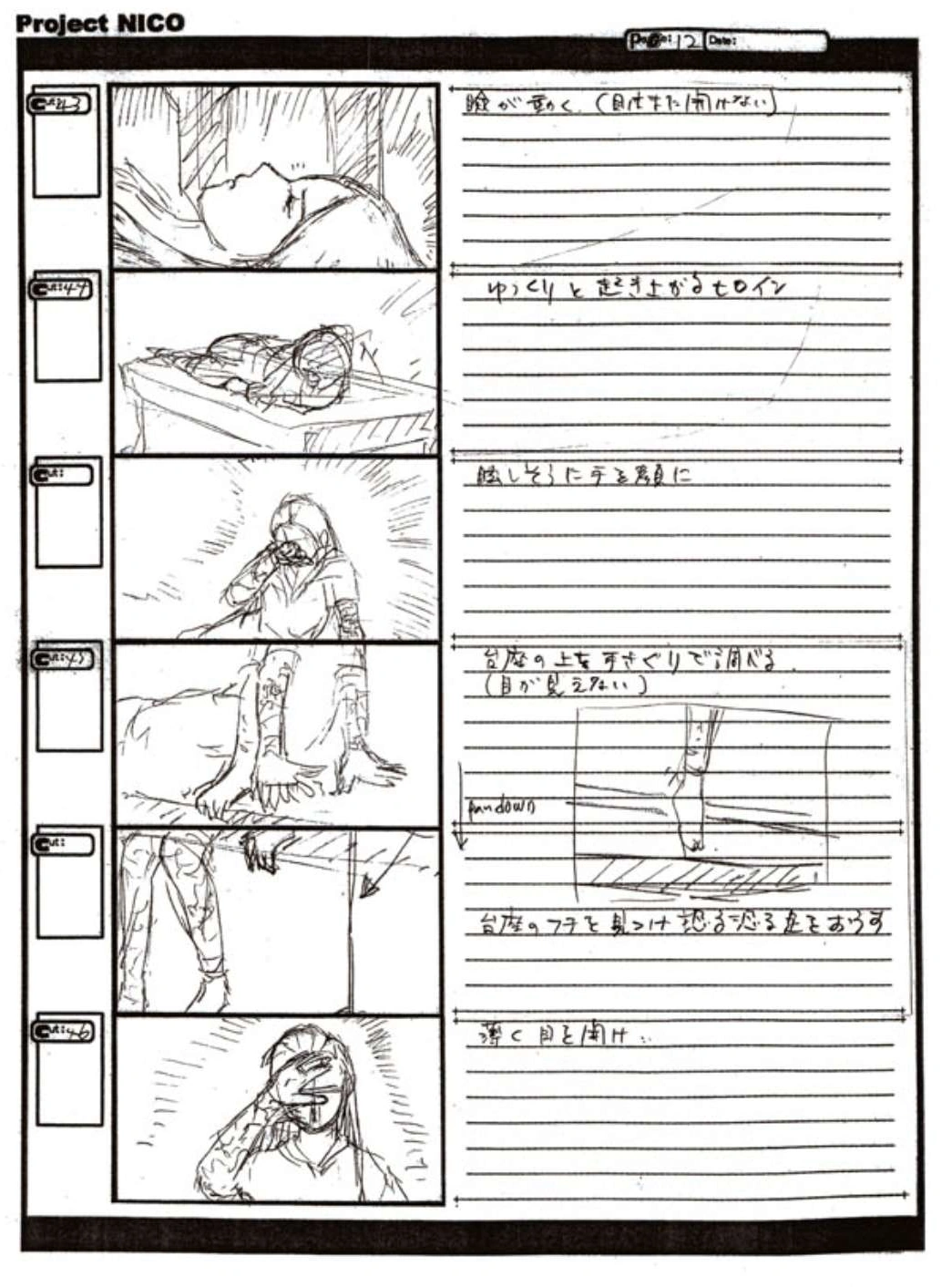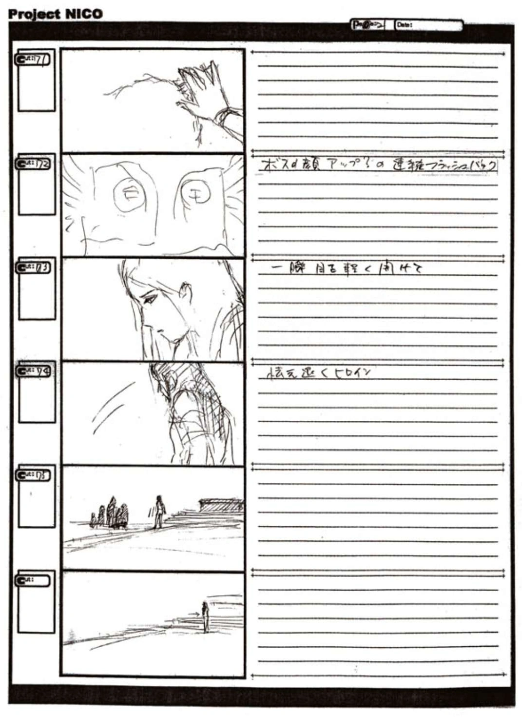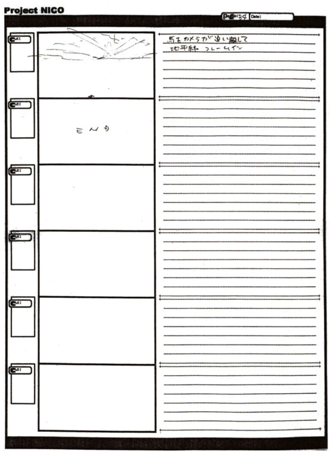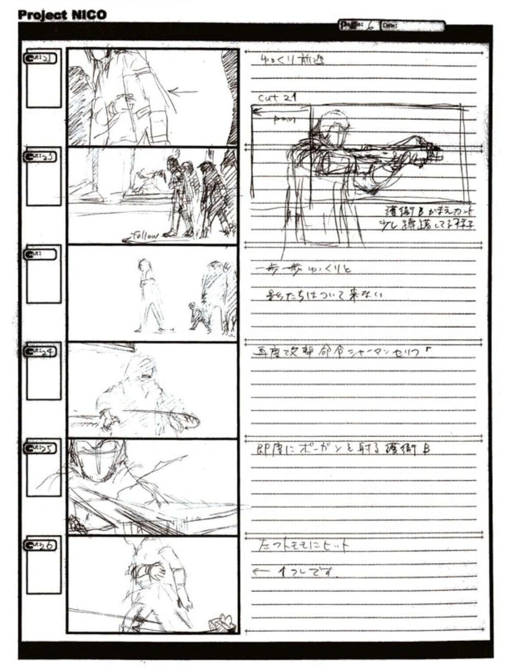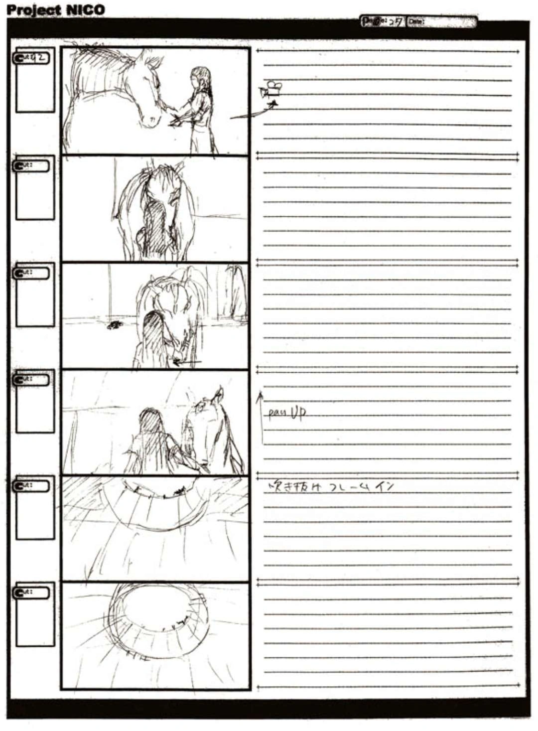The World of Fumito Ueda artbook has storyboards of the entire alternate ending. They are all below. Translations will come at a later point in time. Pages 1 through 6 are used in the final ending. However, from page 8 onwards the ending differs heavily: In the page 8 of the final ending one of the guards stabs Wander with the Ancient Sword, while in the early ending's page 8 he is saved by Mono instead, leading to a completely different outcome.