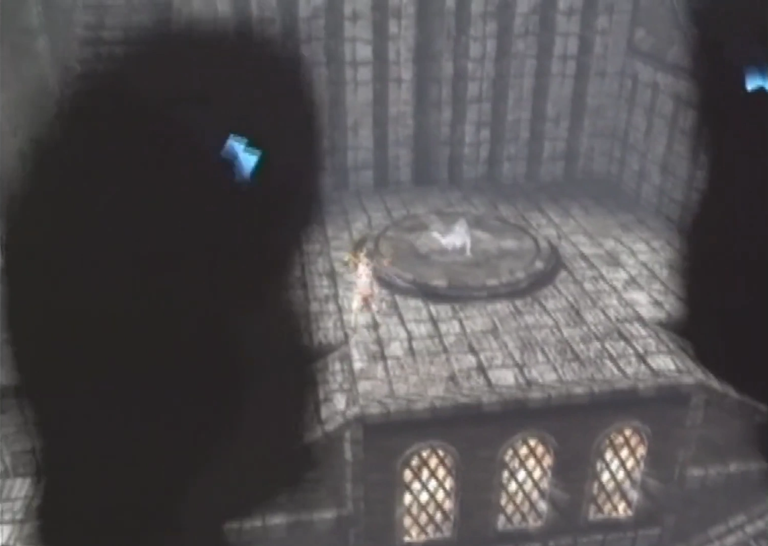Ico fighting shadows next to the entrance to Chandelier (2000/05/17).