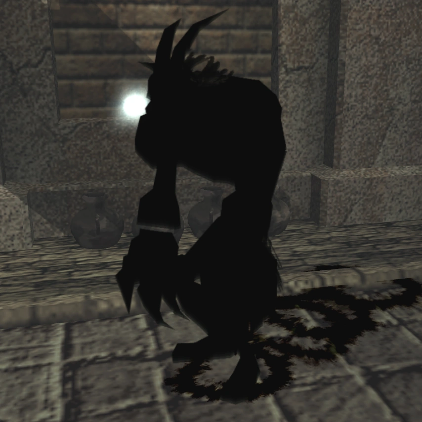 | Large enemies that likely existed at some point in development from June 2001 to earlier. Unique animations for these Shadows (placed inside a folder named "enemy_l", presumably short for "enemy_large") were found in the June 8th demo. The folder contains animations labelled as "EN3", as well as animations labelled "BOSS". The EN3 animation files are loaded in stages where enemies appear, thus can be played. As expected, they seem to depict a larger enemy who walks slowly, is able to pick up objects, and performs attacks aimed at the ground. It was also able to pick up Yorda and carry her to a nest. It's unknown what model(s) used these animations, but they were likely one of the models with the label "hit", as the others still did not exist by June 8th. [Edit] | ||