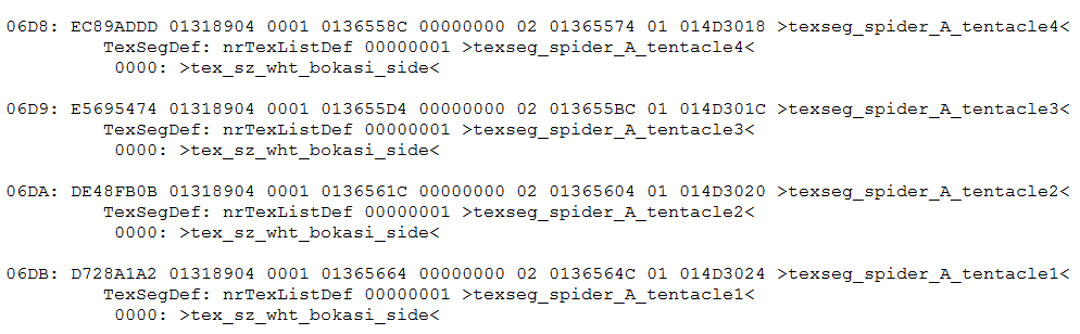 Texture segments for all of the unused idol statue models, each listing their own unique textures.