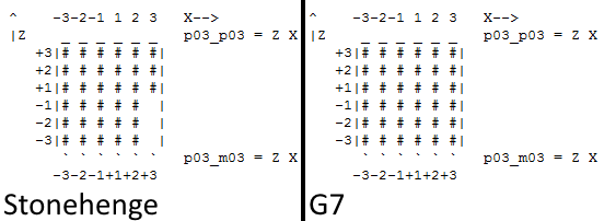 Comparison of Stonehenge's chip data with G7's. Sirius' arena lacked three chip models on the southeastern part of the quadrant it resided, while G7 is a full quadrant.