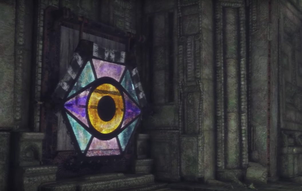 Some time later, in a corridor, they come across two more Talismans, one hanging on each wall, facing each other. The Boy, in a voiceover, realizes that Trico is terrified of them, although he is not sure why.