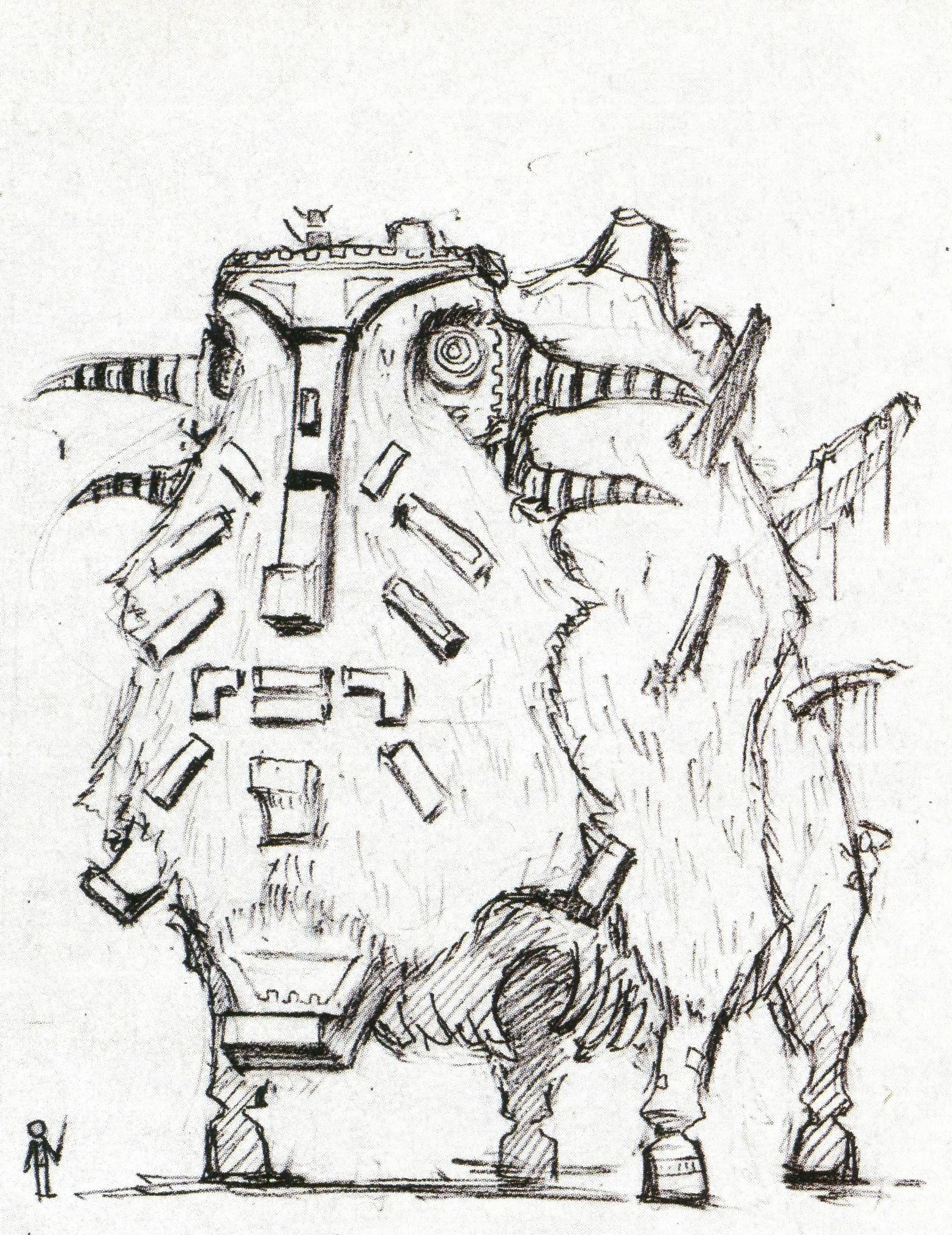 A design sketch of a medium-sized quadrupedal colossus. It is next to the sketch of the previously mentioned colossus.